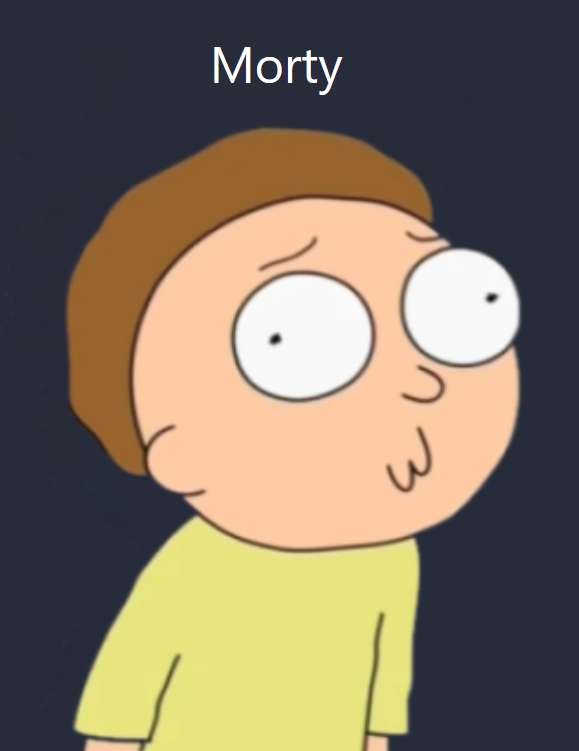 Morty est un jeune garçon de quatorze ans qui est à l'école. Il doit accompagner Rick dans ses aventures car à cause de son intelligence car le cerveau de Rick émet des ondes spécifiques qui peuvent être captée par le gouvernement galactique et comme Morty est spécialement stupides les ondes de son cerveau viennent se caler en symbiose avec celles de Rick et fait ainsi que Rick ne se fait pas repérer. Morty est très fragile, peureux mais aussi impulsif et sombre vite dans la colère et devient incontrôlable. Il à un manque de confiance en lui surement du au fait qu'il se fait constamment rabaisser par Rick mais sa ne l'empêche pas d'aimer et d'admirer son grand-père. Il est un peu l'inverse de Rick, naïf et essai d'être quelqu’un de bien.