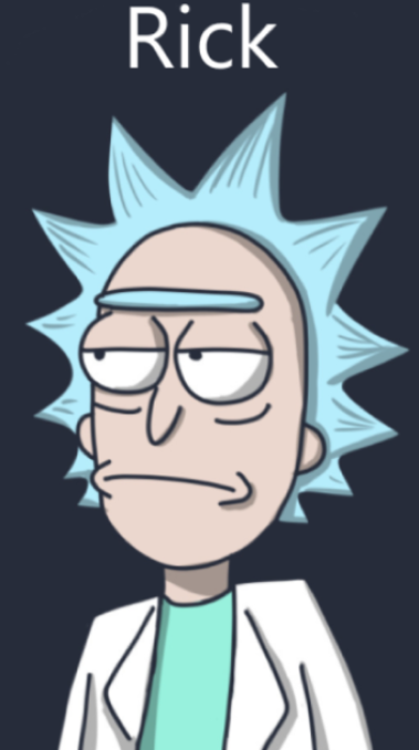 Rick est un scientifique considéré comme le plus intelligent de l'univers. Il est très vulgaire, alcoolique et donne l'impression de n'aimer personne. Son intelligence lui vaut d'être la cible du gouvernement galactique qui aimerais mettre la main sur son invention le pistoportail. Mais Rick ne veut pas le leur donner car ce qui est le plus important pour lui c'est d'être libre et le gouvernement galactique c'est tout l'inverse de la liberté il contrôle la vie de tous et dicte ce qu'ils doivent faire sans leur laisser une once de liberté. Mais la quête de liberté de Rick l'a fait se retrouver seul car c'est ce qui à fait qu'il abandonne sa famille pendant quinze ans. Son intel-ligence le rend également très mauvais en relations humaines. Devant ses proches il a un visage de scientifique arrogant et égoïste mais en réalité il souffre beaucoup. Il manque de peu de se suicider et aime répéter «wubba lubba dub dub» qui dans une langue extraterrestre veut dire «Je souffre énormément. Aidez-moi s'il vous plaît.» mais sa ses proches ne le savent pas.